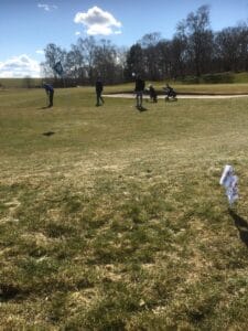 Vejret var flot med solskin og svag vind, men desværre også nattefrost, som nødvendiggjorde, at der måtte spilles til vintergreens.